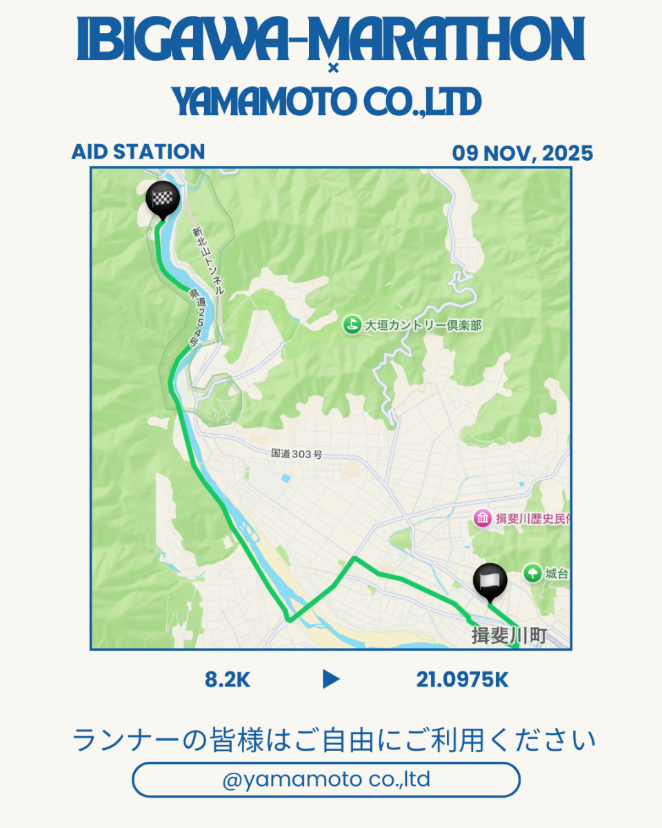 弊社は、地元で開催されるいびがわハーフマラソンの大会コース沿いに位置するため、多くの試走者を観てきました見てきました。